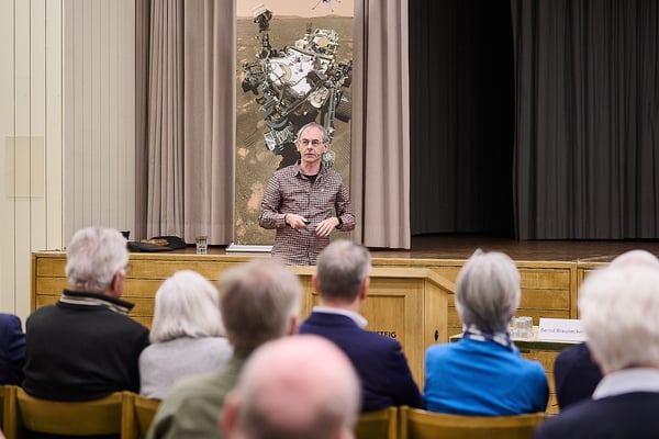 Gerade die aktuellen Forschungen auf dem Mars, die im Referat von Dr. Robin Phillips der maxon international ag aufgezeigt wurden, haben das Publikum begeistert. Auch für Amateurastronomen war so einiges mit dabei. Vor allem als Dr. Dirk Froebrich von der University of Kent (UK) das Amateurastronomen-Projekt HOYS vorstellte, fing die Fragerunde Feuer. „Wie setzt sich denn der Sternenstaub zusammen? Was ist das überhaupt?“, fragten interessierte und aufmerksame Teilnehmende. Und: „Wann ist messen vermessen?“ war eine Frage im Scheinwerferlicht, welcher sich Prof. Gerd Folkers, ehem. Präsident des Schweizer Wissenschaftsrates, annahm. Warum messen wir und wie? Messen wir immer richtig oder welche Fehler – seien diese mathematischer, physikalischer oder menschlicher Natur – tauchen häufig auf und warum? Prof. Gerd Folkers fasste die Thematik kompakt zusammen; einfach und auf den Punkt gebracht.
