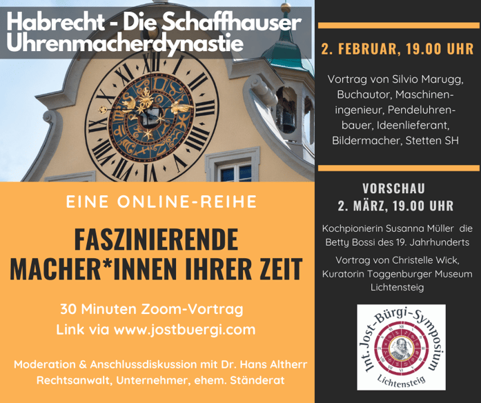 Vortrag von Silvio Marugg, Buchautor, Maschineningenieur, Pendeluhrenbauer, Ideenlieferant, Bildermacher, Stetten SH