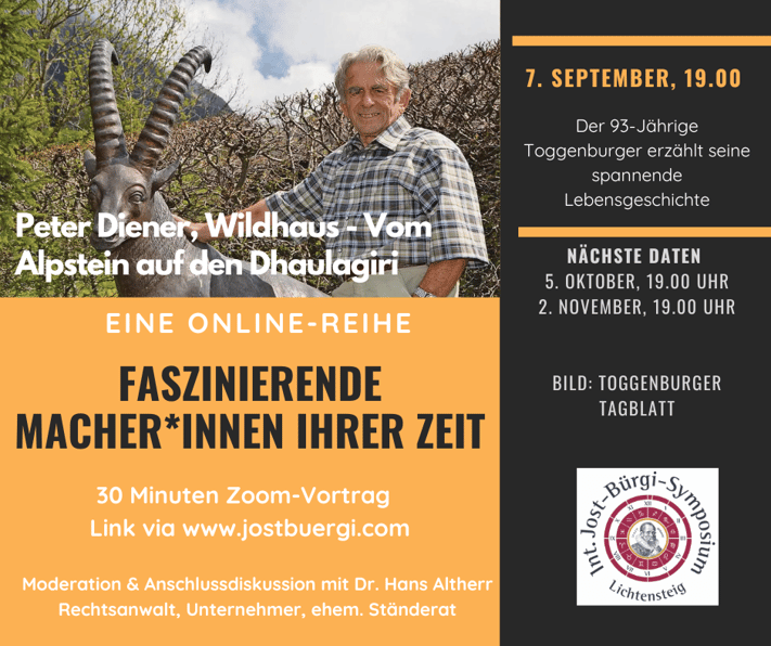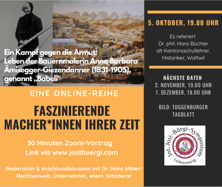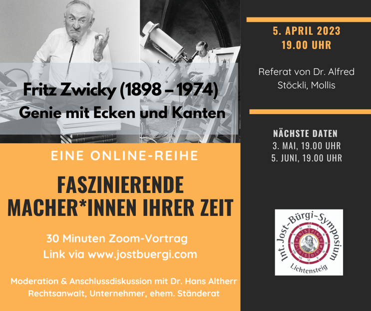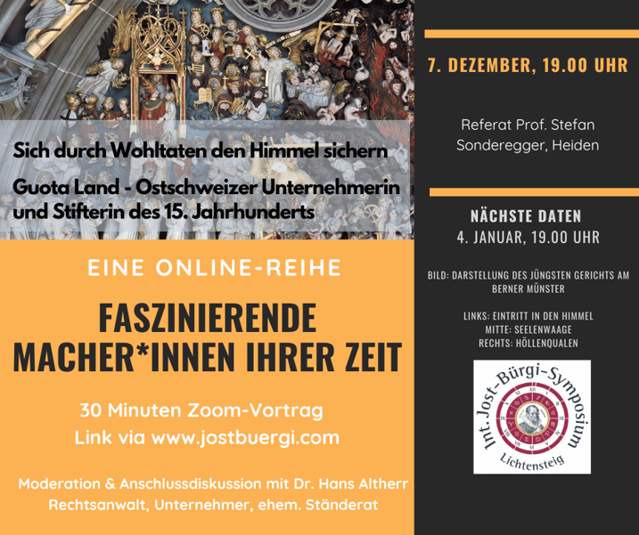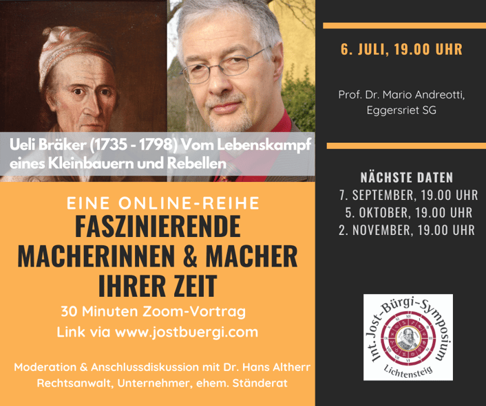Vorträge von ca. 30 Minuten mit anschliessender Diskussion via Zoom, jeweils am 1. Mittwoch jedes Monats