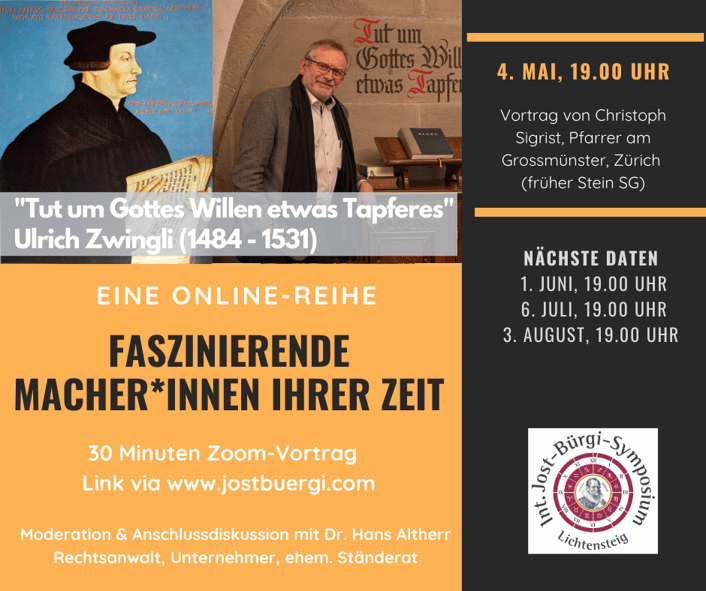 Vortrag von Christoph Sigrist, Pfarrer am Grossmünster, Zürich
